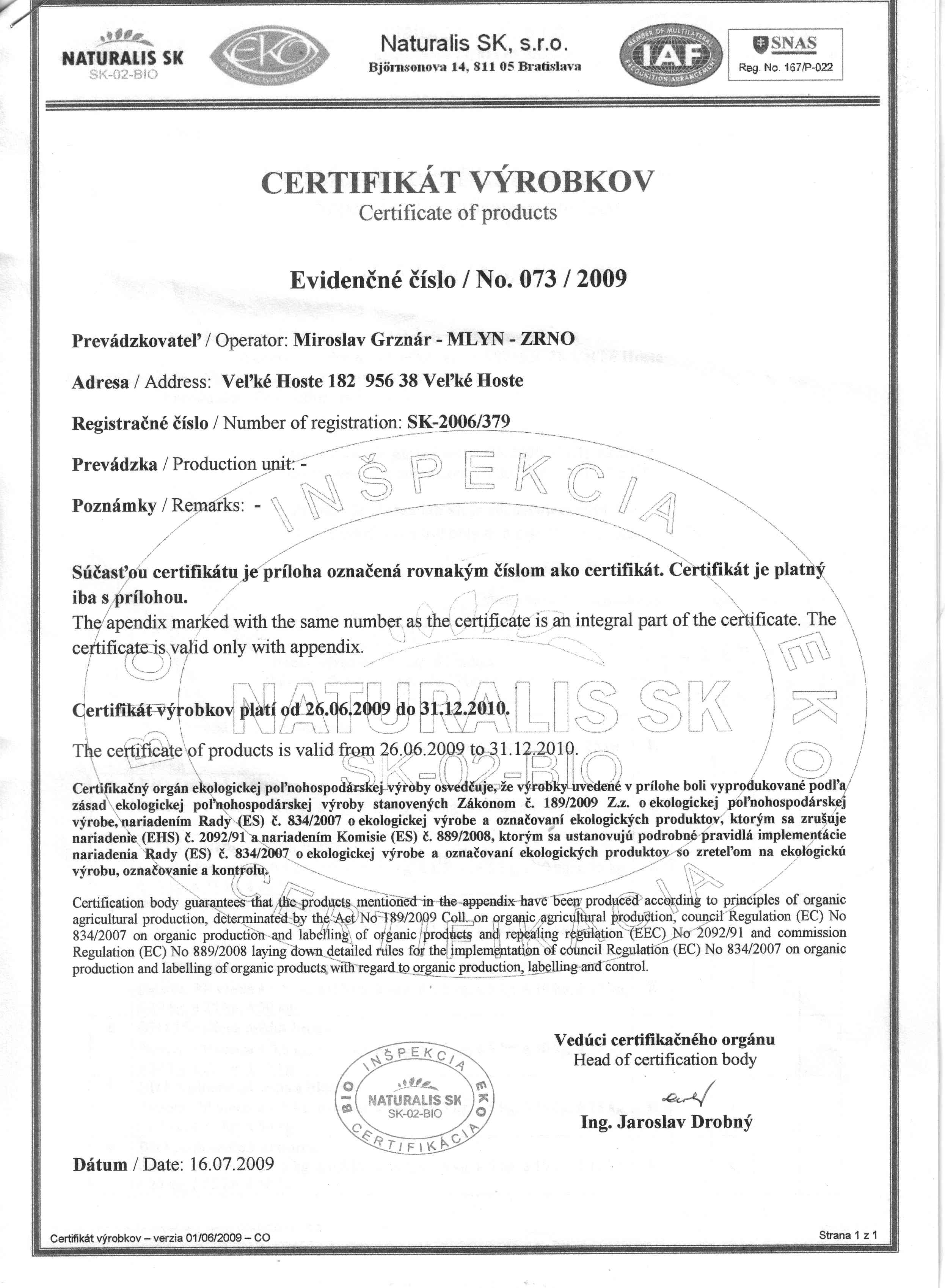 Bio pšeničná múka celozrnná /hladká/: vyrobené z bio pšenice potravinárskej letnej /Triticum aestivum/. V príprave na mletie prejde obilné zrnko čistiacim, mechanickým procesom a to tak, že sa najskôr vytriedia a oddelia všetky častice (kamienky, prach, väčšie a menšie zrná). Následne sa zrná posunú do odieračky, ktorá v točivom procese vrhá zrná proti otvorom v dierovanom site. Takto sa povrch zrna mechanicky obrúsi. Týmto sa odstránia a odsajú z povrchu všetky časti, prípadne pozostatky reziduí z ošetrovania pšenice počas rastu. Po tomto procese sa celé zrno zomelie na múku.